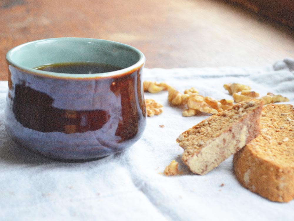 Biscotti rarely calls to me at a bakery. Next to all of the more gooey, more creamy, more sweet sweets, biscotti fails to convince. Maybe it was smelling the biscotti baking in my own kitchen, maybe it was discovering just how easy it is to make, or maybe it was simply the fact that I made it myself (!) that I find myself hooked. Biscotti instantly found its way onto my list of food gifts to make for friends and family at the holidays. Biscotti instantly found its way into my heart and into my Sunday morning coffee routine.